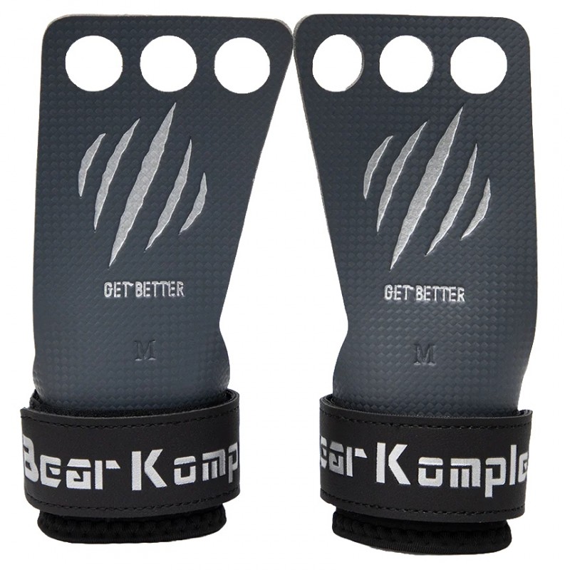 Los grips Bear Komplex están hechos de una fibra de carbono ligera patentada que se adapta fácilmente a la forma de la barra para brindar una óptima protección y asegurar el mejor agarre, incluso sin la ayuda de magnesio.