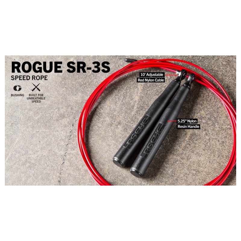 La soga Rogue SR-3S cuenta con asas giratorias que permiten obtener una mayor fluidez en los saltos que con los modelos tradicionales. Tiene además un cable de acero recubierto de 2.3mm, lo que la hace ideal para quienes están comenzando con los saltos dobles y desean trabajar series mas largas.